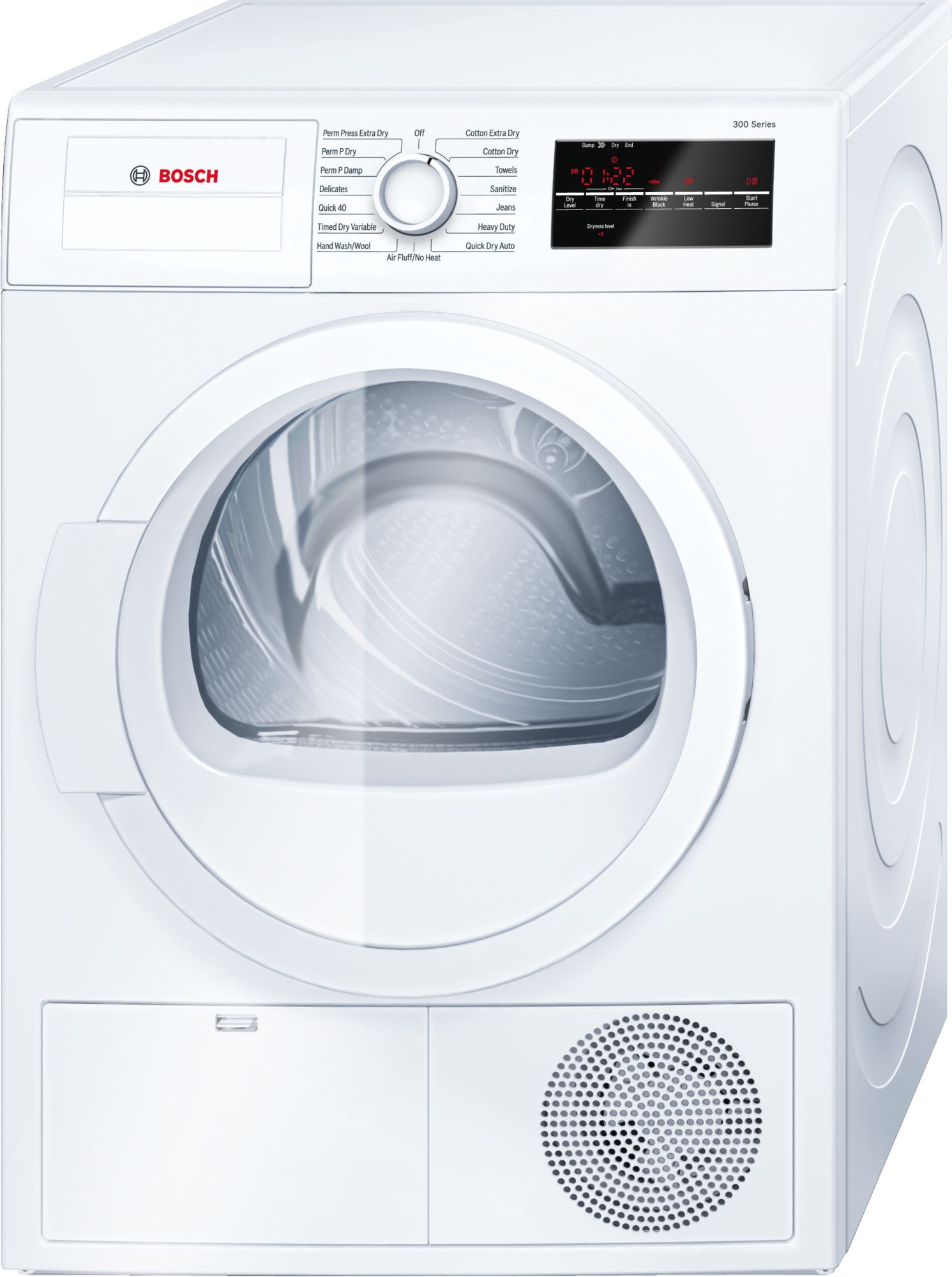 Bosch 300 Series White Front Load Electric Dryer with 4.0 cu. ft. capacity, LED interior light and stackableRead More