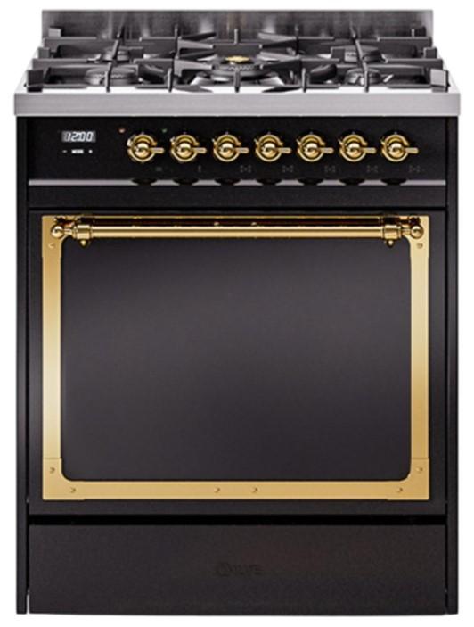 Introducing the new Nostalgie II 30" dual fuel range, a classic addition with a touch of innovation to any kitchen. This range feature sealed burners equipped with total black brass burner that has a non-stick nanotechnological coating, heavy cast iron grates, 4 cu. ft. total oven capacity and soft closing door system.Read More